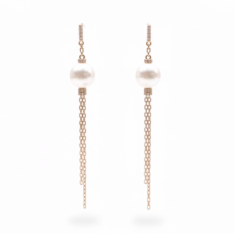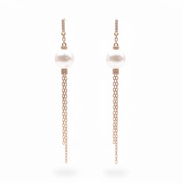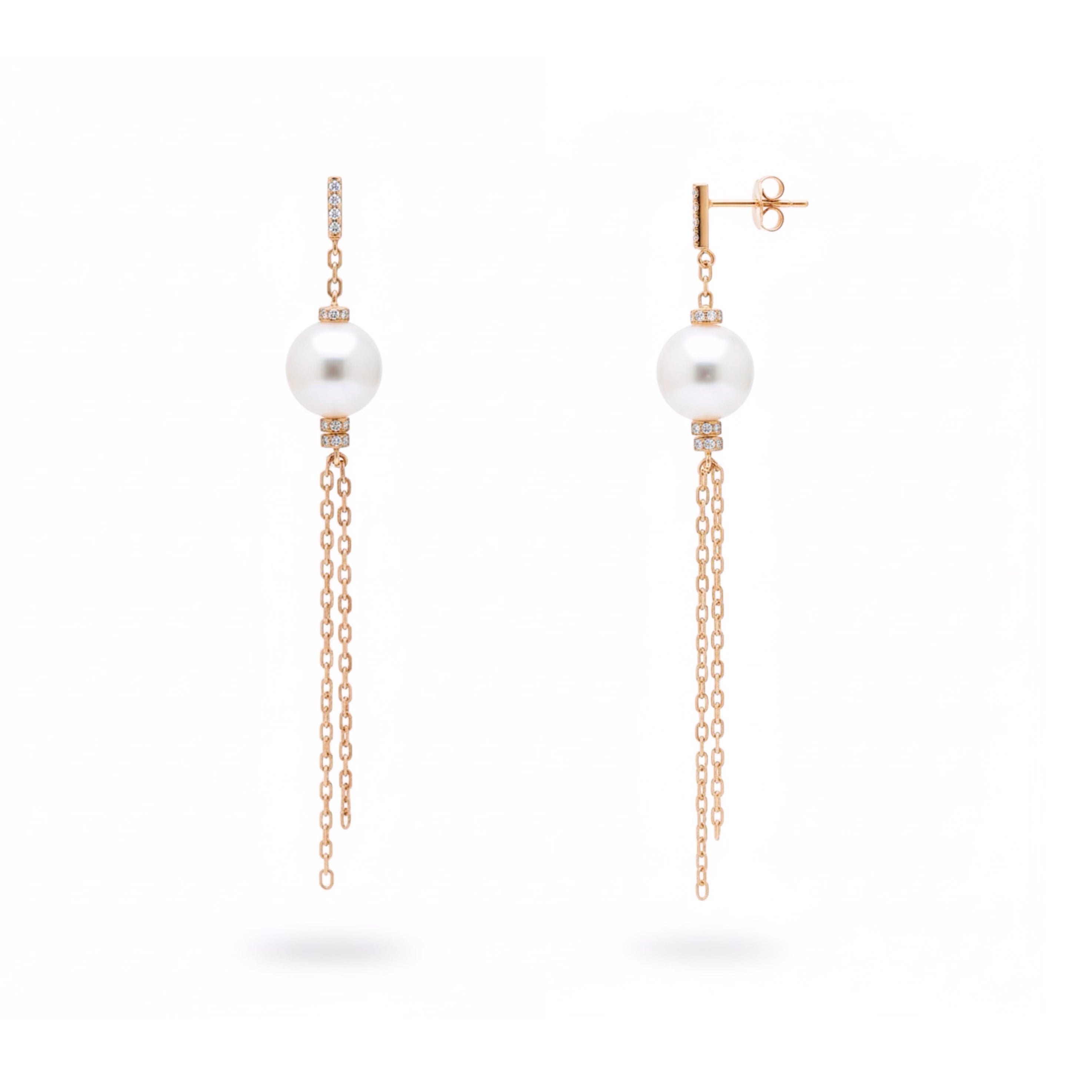 18K Rose Gold South Sea Pearl Drop Earring. There are 2 round White South Sea Pearl on the earring.
