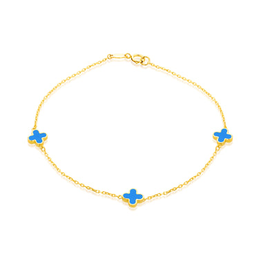 9K Yellow Gold 3 Turquoise Petal Bracelet - 20789367